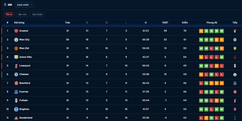 Nguồn tin của link bong da truc tiep cho biết, hy vọng giành vé dự Champions League của Manchester United đang trở nên rõ ràng hơn bao giờ hết sau khi Arsenal đánh bại Sporting 1-0 ở lượt đi tứ kết Champions League. Kết quả này không chỉ mang ý nghĩa với riêng Arsenal mà còn tạo ra tác động tích cực cho cả bóng đá Anh trên bảng xếp hạng hệ số UEFA. Với chiến thắng quan trọng đó, Premier League tiếp tục củng cố chắc chắn vị trí dẫn đầu và gần như nắm trong tay 5 suất vào thẳng Champions League mùa tới. Trong bối cảnh cuộc cạnh tranh cho suất bổ sung còn lại đang diễn ra giữa Italia và Tây Ban Nha, việc bóng đá Anh có thêm một đại diện góp mặt ở sân chơi danh giá nhất châu Âu đã mở ra lợi thế cực lớn cho MU trong giai đoạn cuối mùa giải 2025/26.